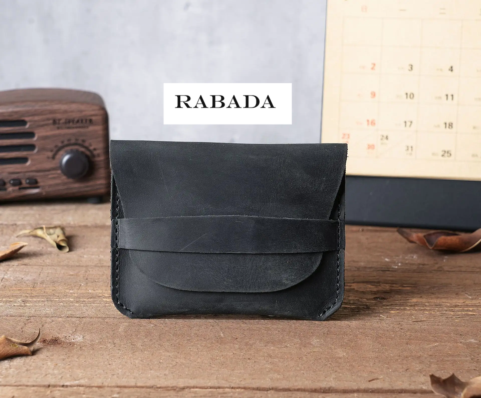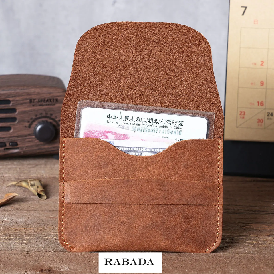Tarjetero de cuero genuino hecho a mano con logotipo personalizado para mujer, tarjetero de cuero de grano completo Crazy Horse para hombre