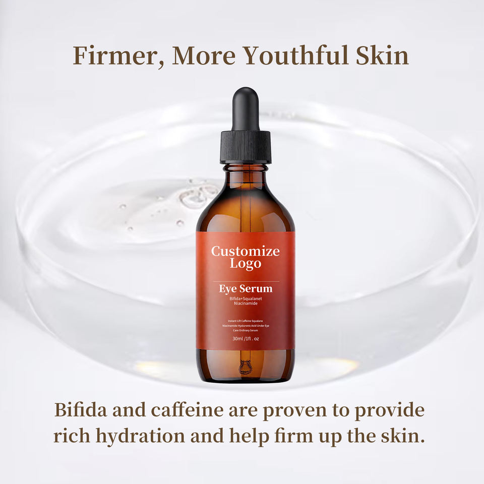 Logotipo personalizado Oem Odm Instant Lift Cafeína Escualano Niacinamida Ácido hialurónico Bajo el cuidado de los ojos Suero ordinario