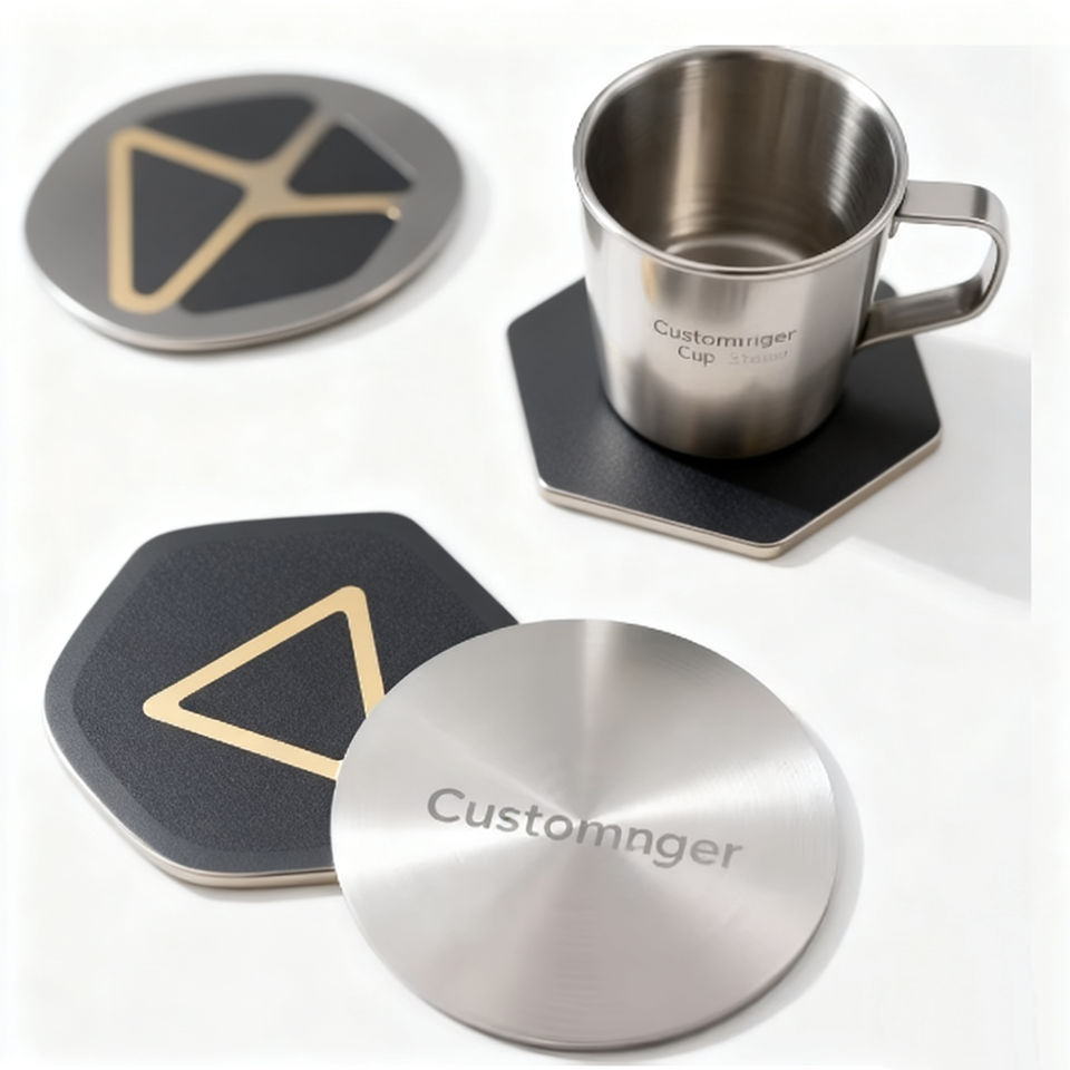 Posavasos de Acero Inoxidable con Logotipo Personalizado, Mecanizado CNC, Electroerosión por Hilo y Brochado