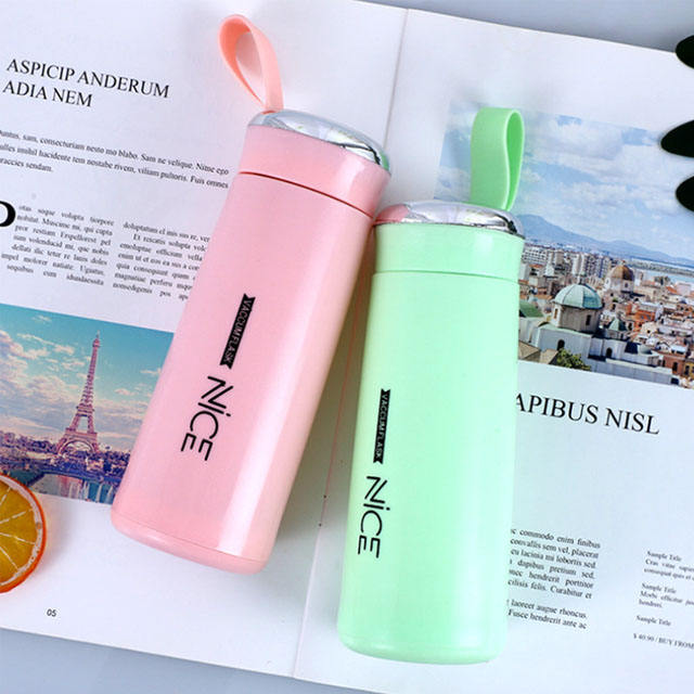 Personalizar Macaron bonito regalo publicitario forro de vidrio agua creativa Simple tienda departamental botella de estudiante con asa