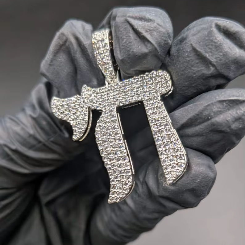 Colgante Personalizado con Símbolo Pi de Moissanita, Estilo Hip Hop, para Fiestas, en Plata de Ley 925, Joyería Fina, Colgantes y Dijes