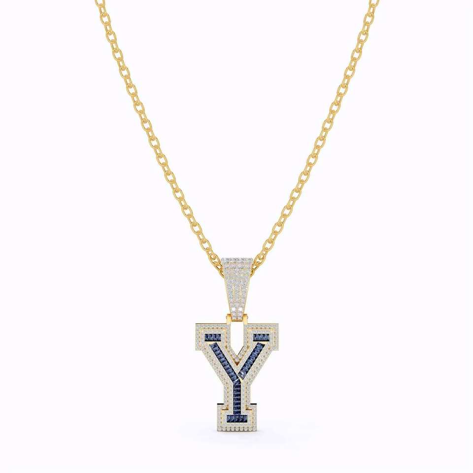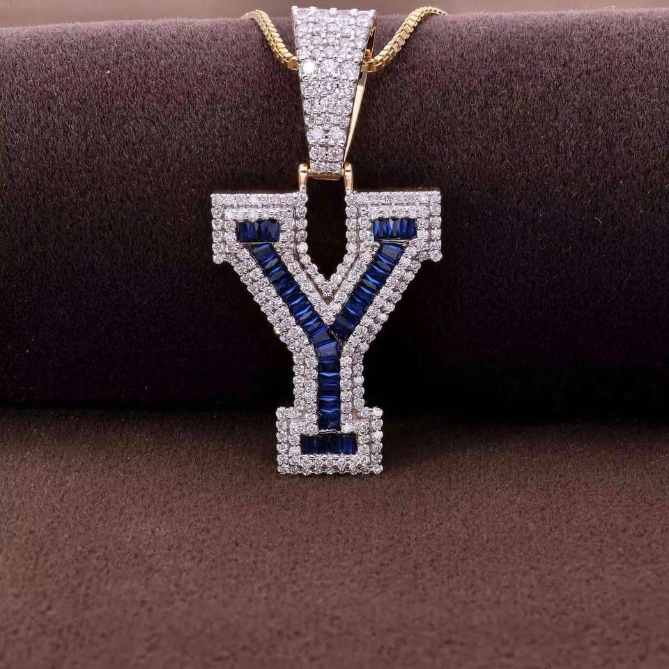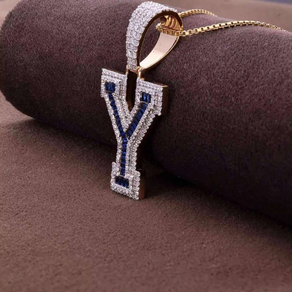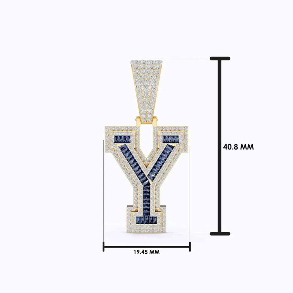 Colgante Personalizado con Inicial (Letra Y) de Moissanita Corte Esmeralda, Engastado en Plata 925, Bañado en Plata, Unisex, Estilo Hiphop, Charms de Terceros