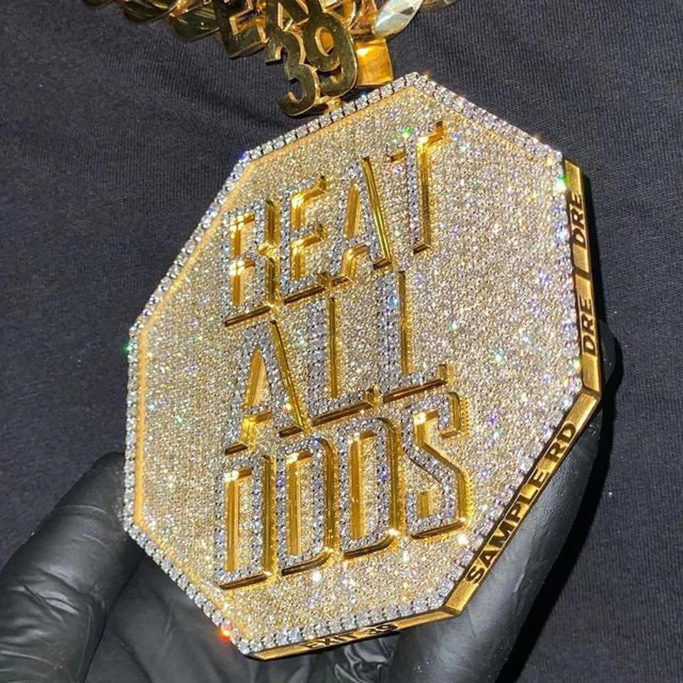 Colgante de Lujo Personalizable con Nombre y Diamante Moissanita para Hombre, Chapado en Oro Amarillo de 14k sobre Plata de Ley, Certificado, Chapado en Rodio
