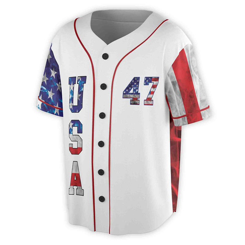 Personalizar nombre Número Azul Rojo bandera americana jersey de béisbol de alta calidad chaquetas hechas a medida