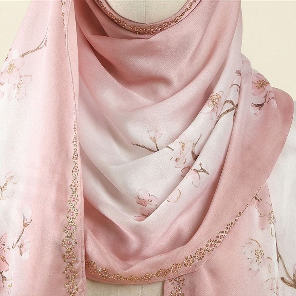 Pañuelo Hijab de Chifón Personalizado Brillante con Cadena y Pedrería, Suave y Liso para Mujer Musulmana