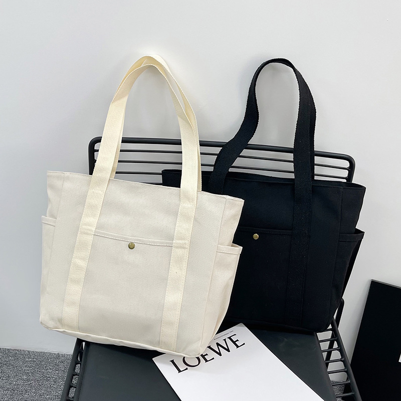 Bolsa de Mano de Lona Personalizada con Logotipo Impreso, Gran Capacidad, Casual, Reutilizable, para Compras, Playa, con Múltiples Bolsillos