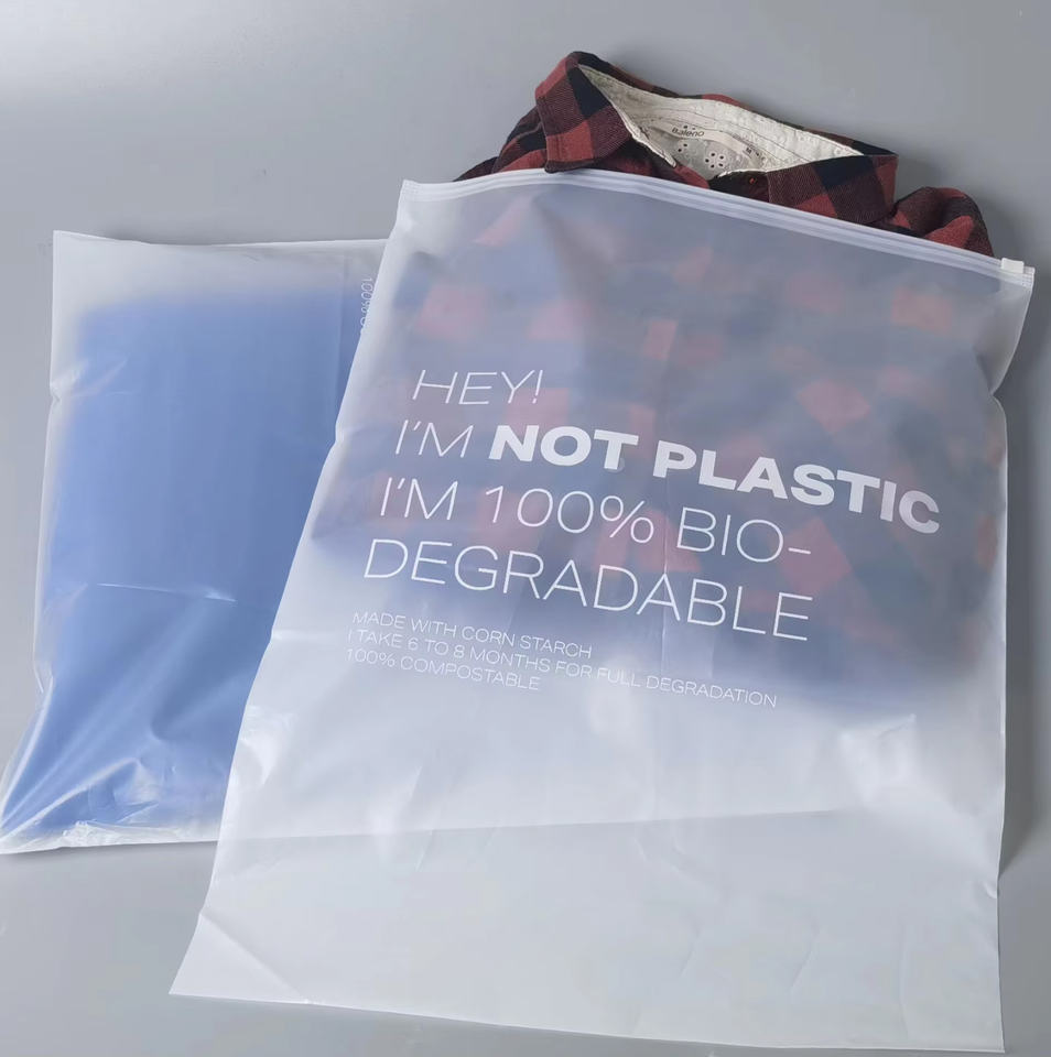 Bolsas con cremallera reciclables biodegradables de almidón de maíz troqueladas personalizadas con logotipo personalizado para envío de ropa