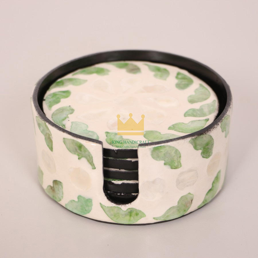 Posavasos de aislamiento térmico de cerámica de ratán personalizado, forma redonda con incrustaciones coloridas para mesa y utensilios de cocina, venta al por mayor