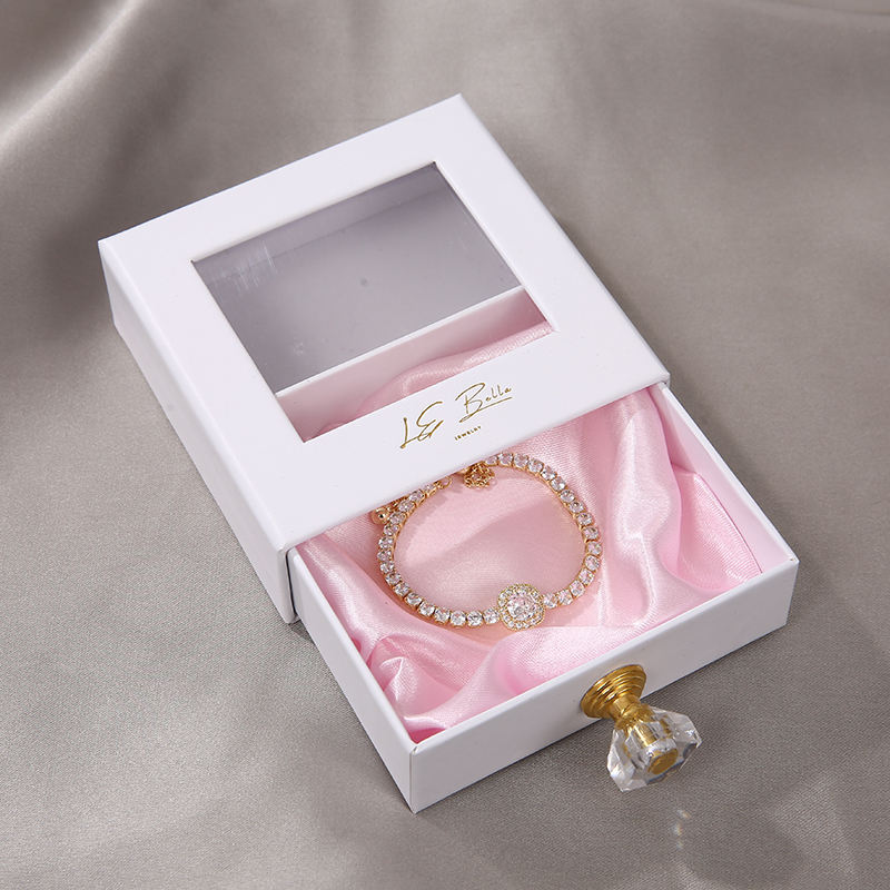 Cajas de Regalo Rectangulares Personalizadas con Ventana Transparente de PVC, Cajas de Papel con Cajón Deslizable y Asa de Piedra