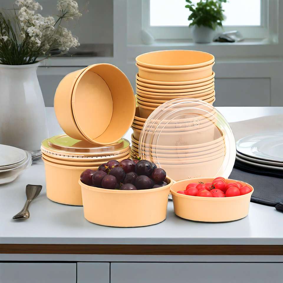 Personalizar Reciclaje Contenedores de alimentos Cuencos de papel redondos Tazón de embalaje de alimentos de papel Embalaje con tapa