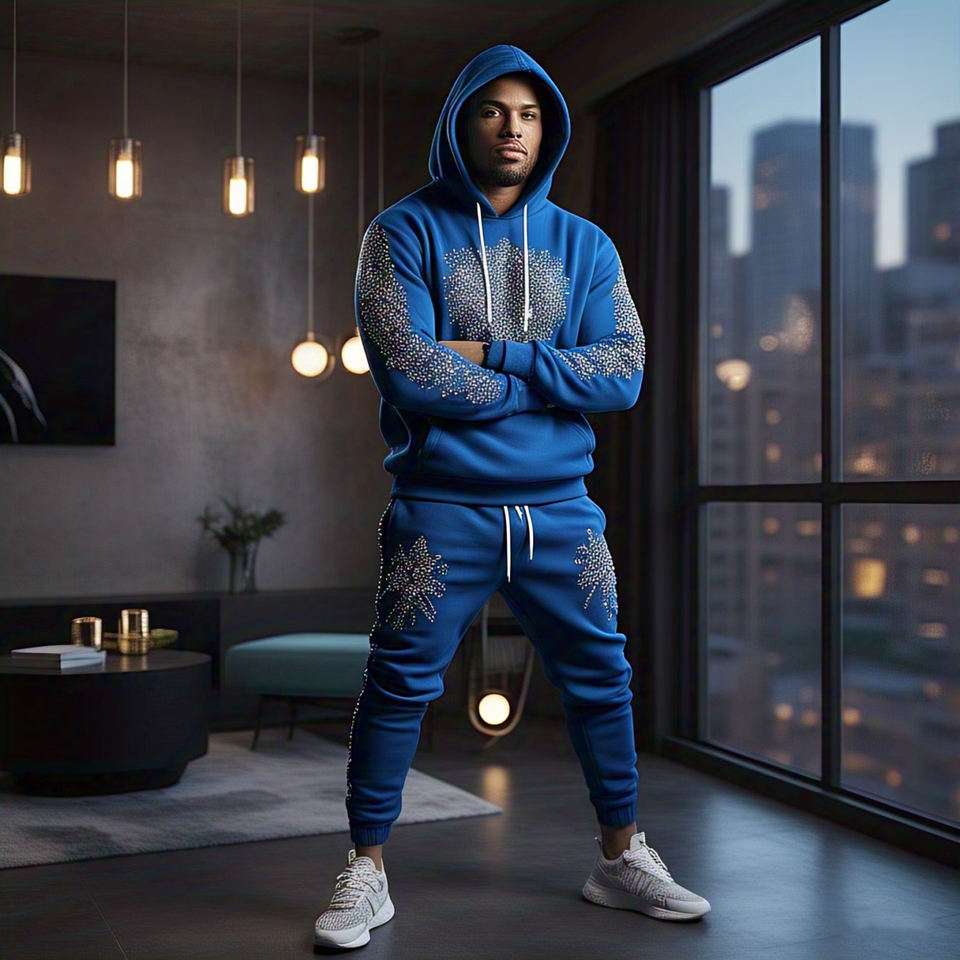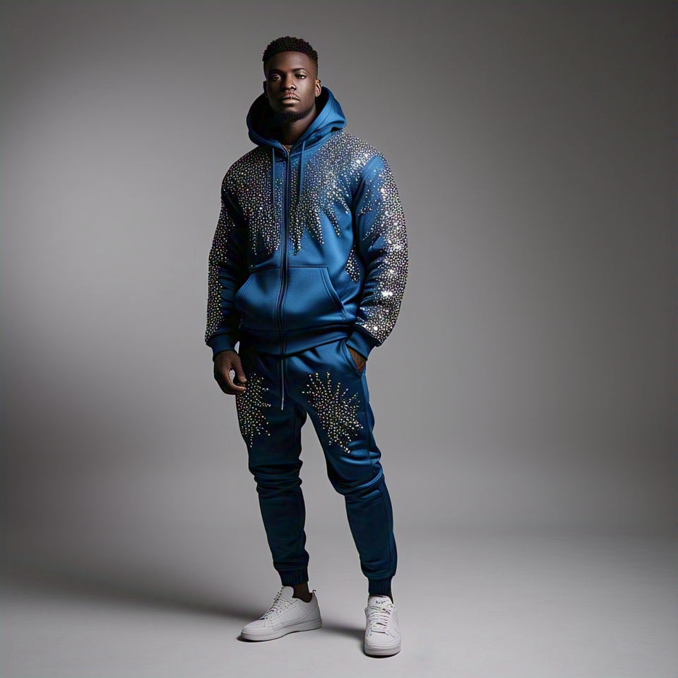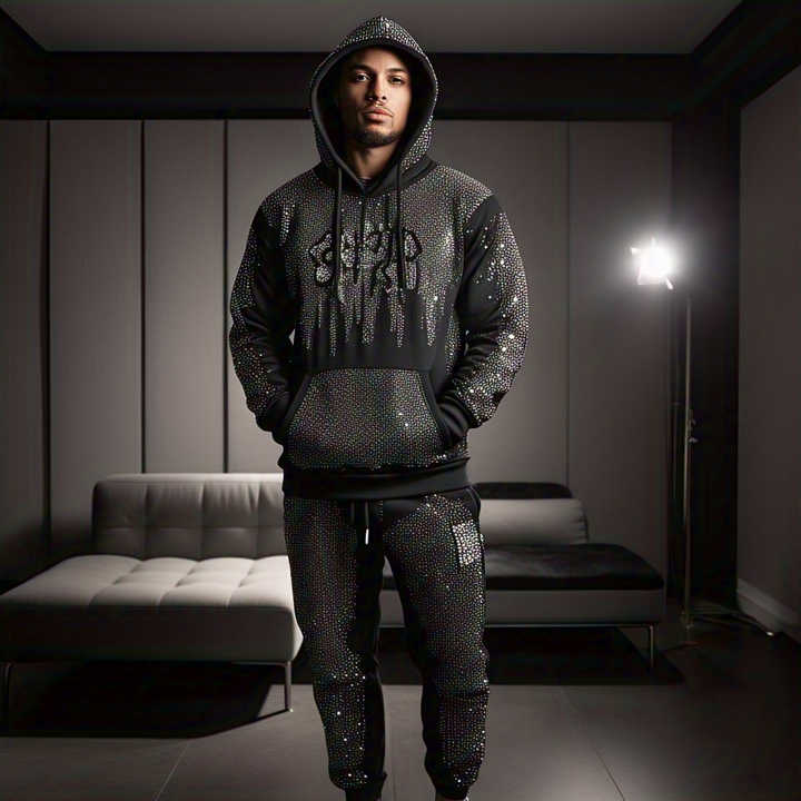 Personalizar Rhinestone Chándal Hombres OEM Diseño Rhinestone Sudaderas con capucha Pantalones de chándal Hombres Jogger Fitness Wear Rhinestone Chándal