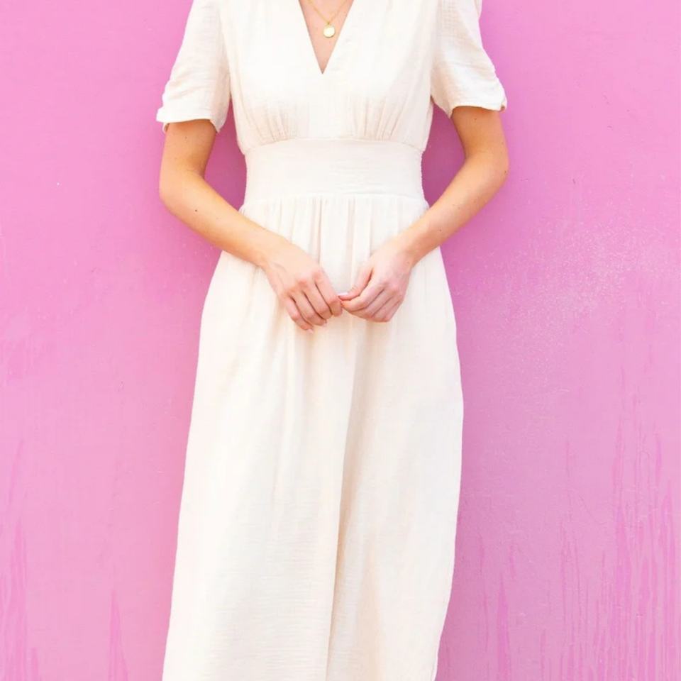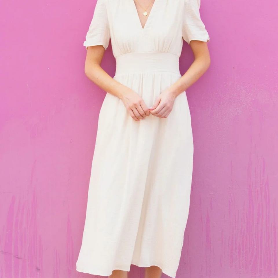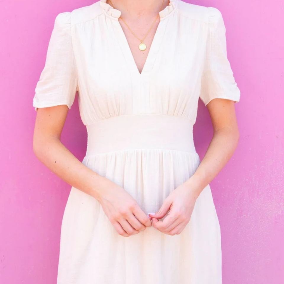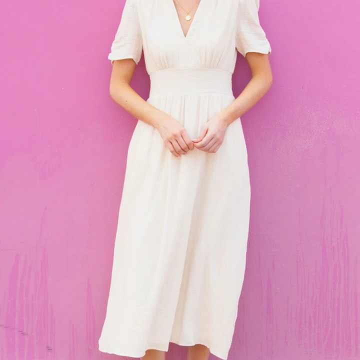 Vestido Midi de Verano Personalizable con Volantes, Elegante, de Algodón y Lino, Cuello en V, Casual, Corte A, Manga Corta para Mujer
