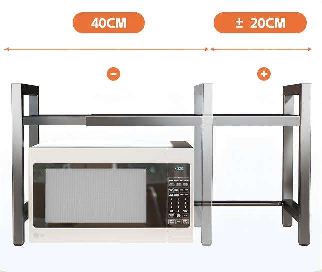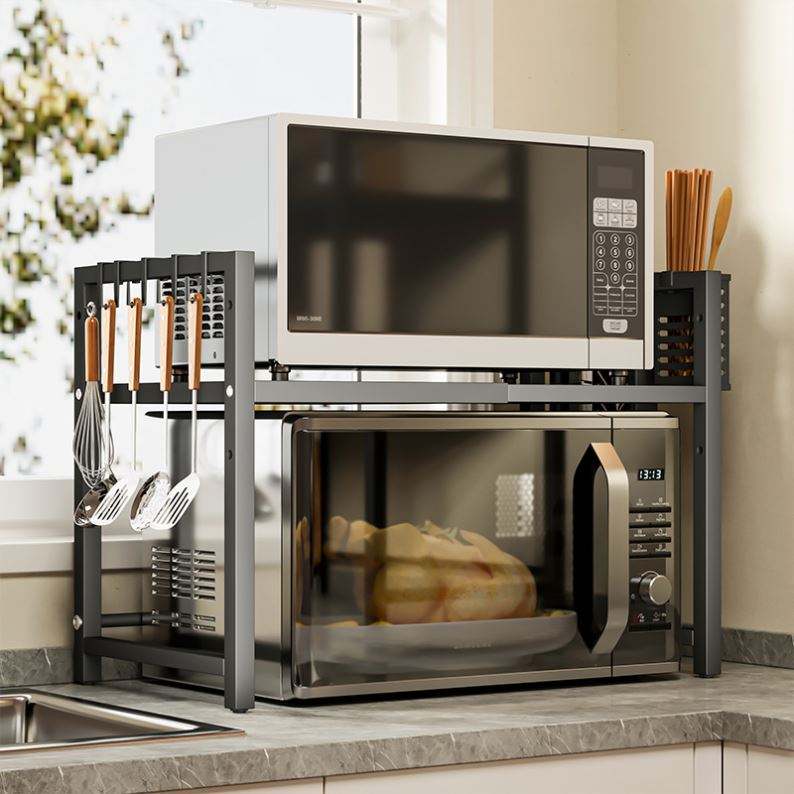 Estante de Almacenamiento Retráctil de Acero al Carbono de Una Sola Capa Personalizable para Horno de Microondas con Ganchos para Cuchillos para Cocina