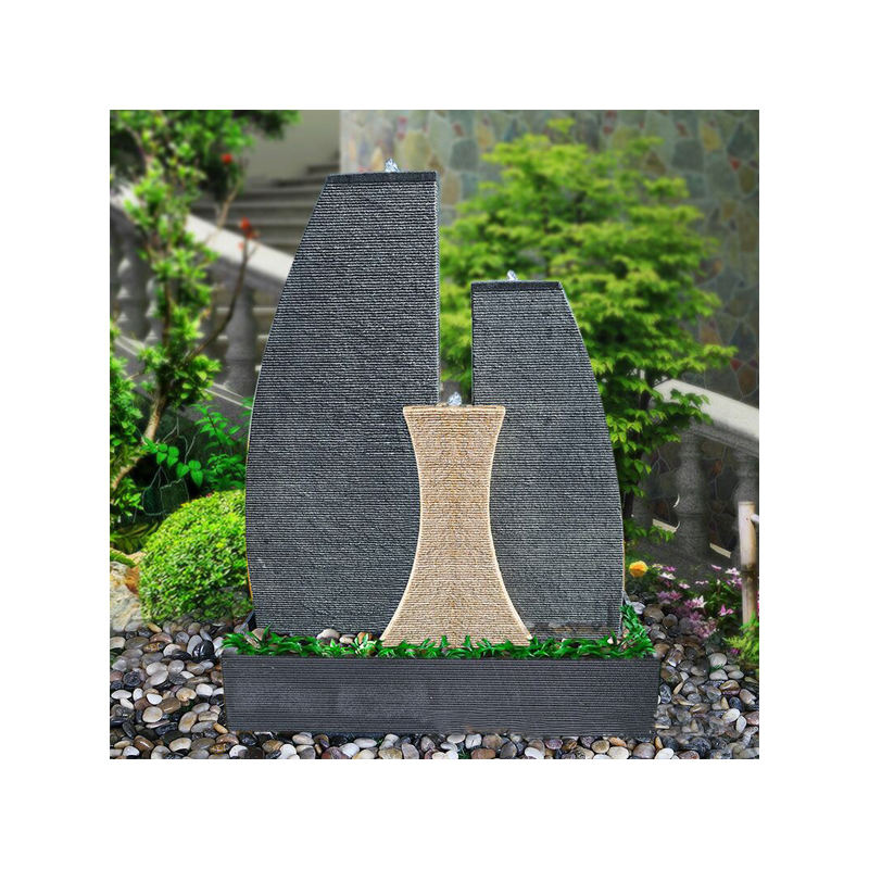 Fuente de Agua de Piedra Personalizada, Cascada de Agua con Peces Tallados, Cascada de Granito, Iluminación LED, Decoración para Patio y Parque al Aire Libre