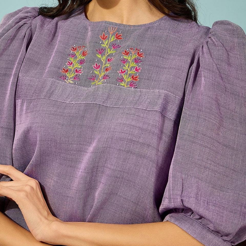 Técnicas:Bordado, Plisado