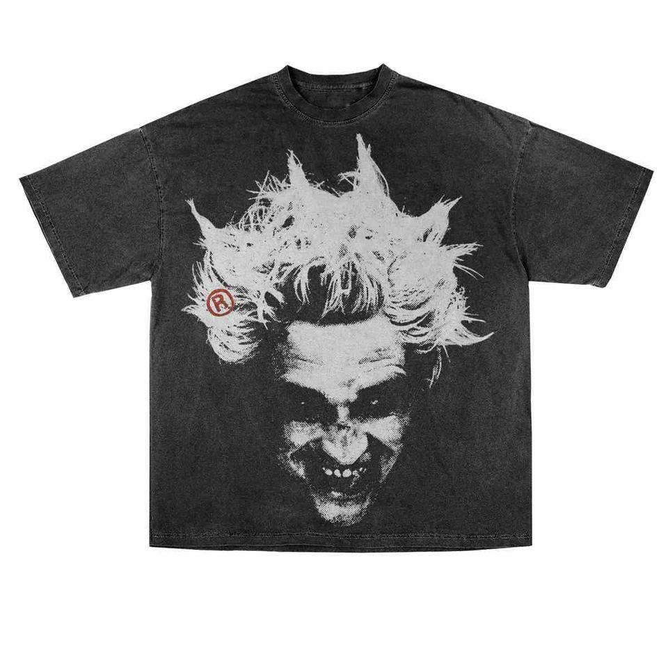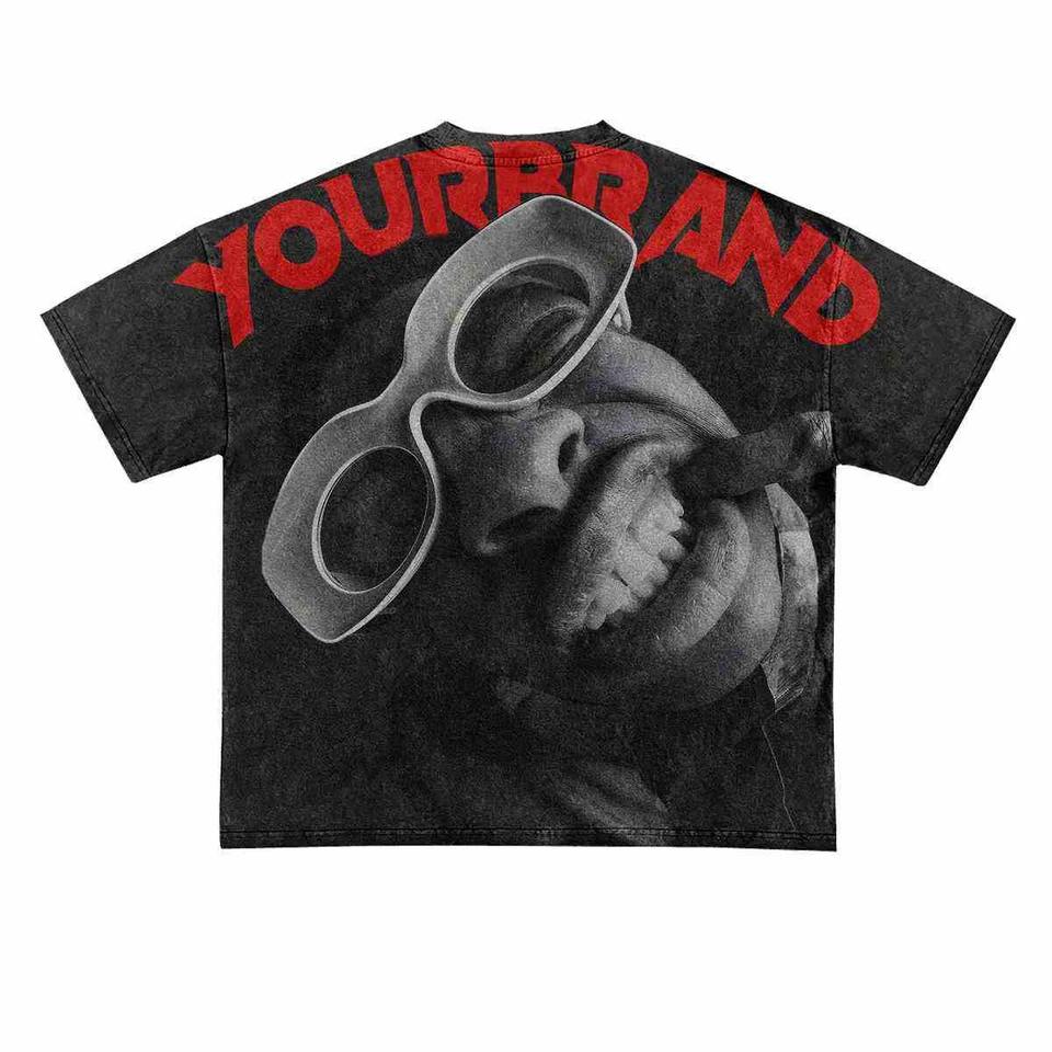 Camiseta lavada con ácido de gran tamaño personalizable, camiseta gráfica recortada de algodón 100% con serigrafía de dobladillo crudo y efecto desteñido por el sol