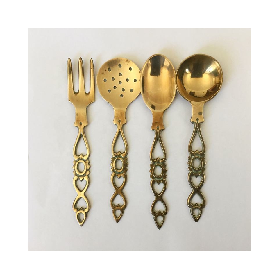 Juego de cubiertos de diseño Trishul de mango corto de latón tradicional personalizado, cubiertos de acero inoxidable, cubiertos chapados en oro