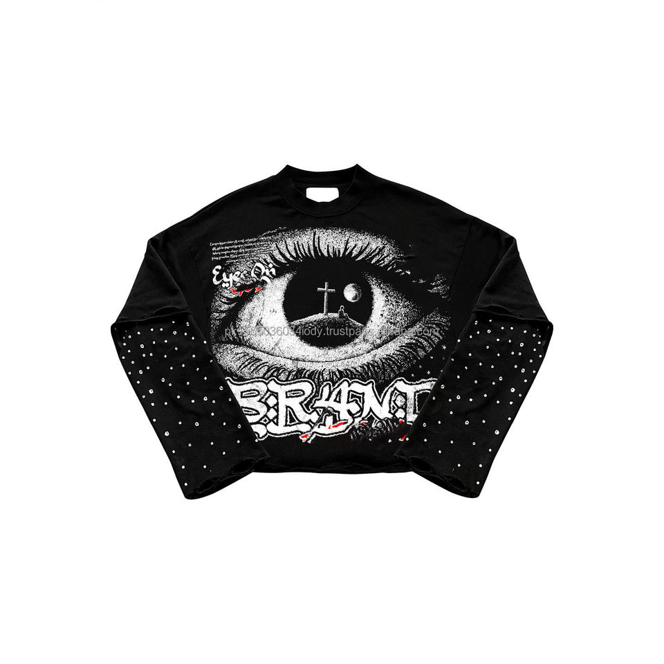 Camisetas Cortas Personalizadas de Lujo Vintage con Pedrería, de Alta Calidad, con Lavado Ácido y Estilo Desgastado, para Hombre