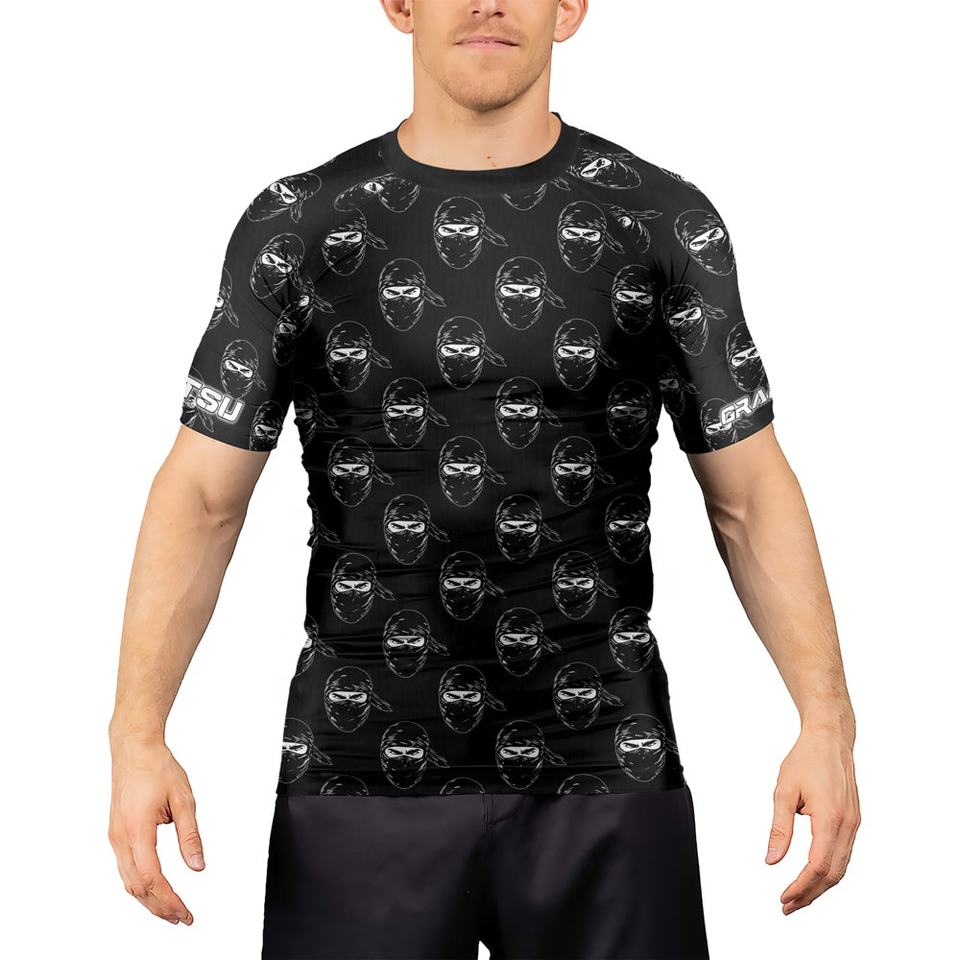 Camiseta de Compresión Rash Guard de MMA BJJ Sublimada y Transpirable con Logotipo Personalizado para Hombre, Tejido de Poliéster/Nailon