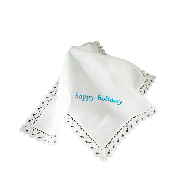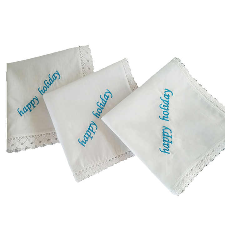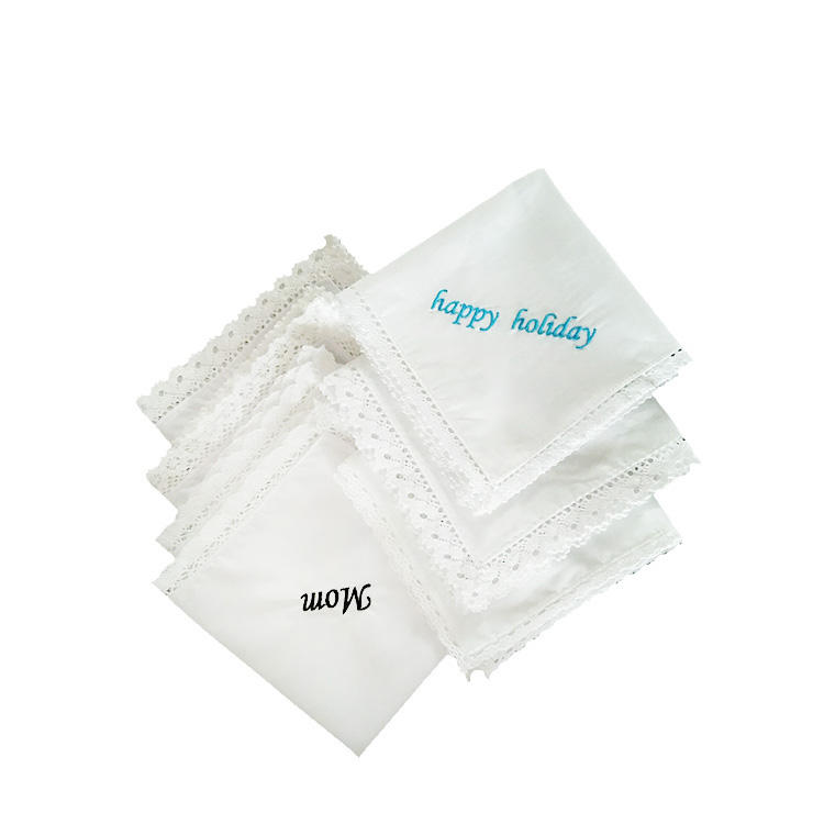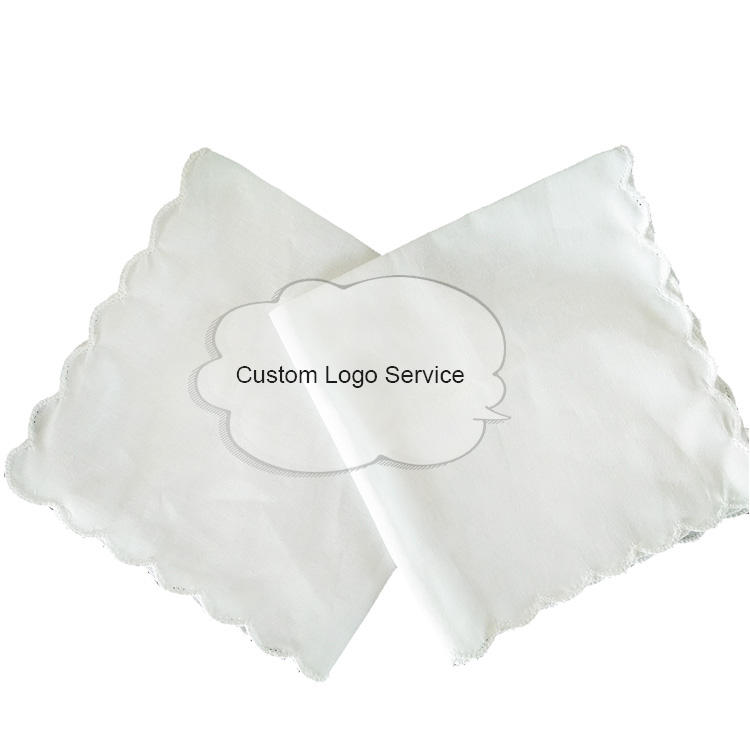 Personalizado 100 algodón damas blanco tejido bordado pañuelo