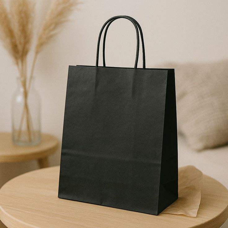 Bolsas de Papel Kraft Personalizadas 100% Recicladas de Color Negro para Regalos, con Asas Premium de Alta Calidad