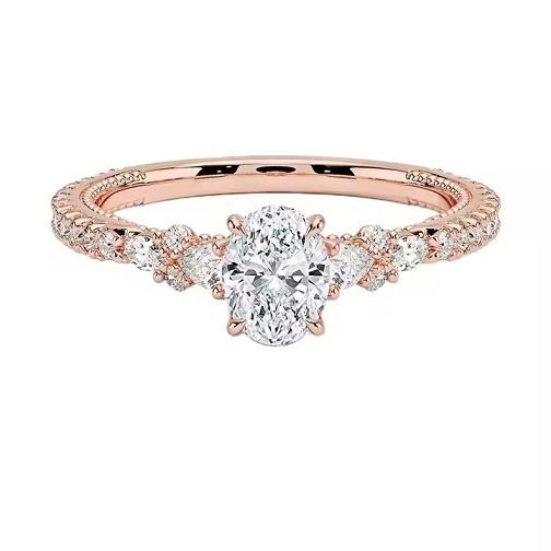 Personalizado 10K oro significativo Oval corte Moissanite diamante solitario anillo de compromiso