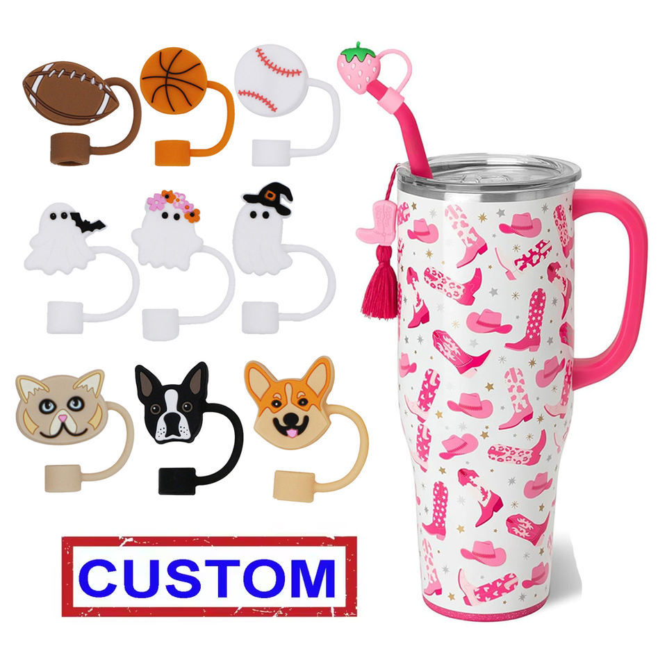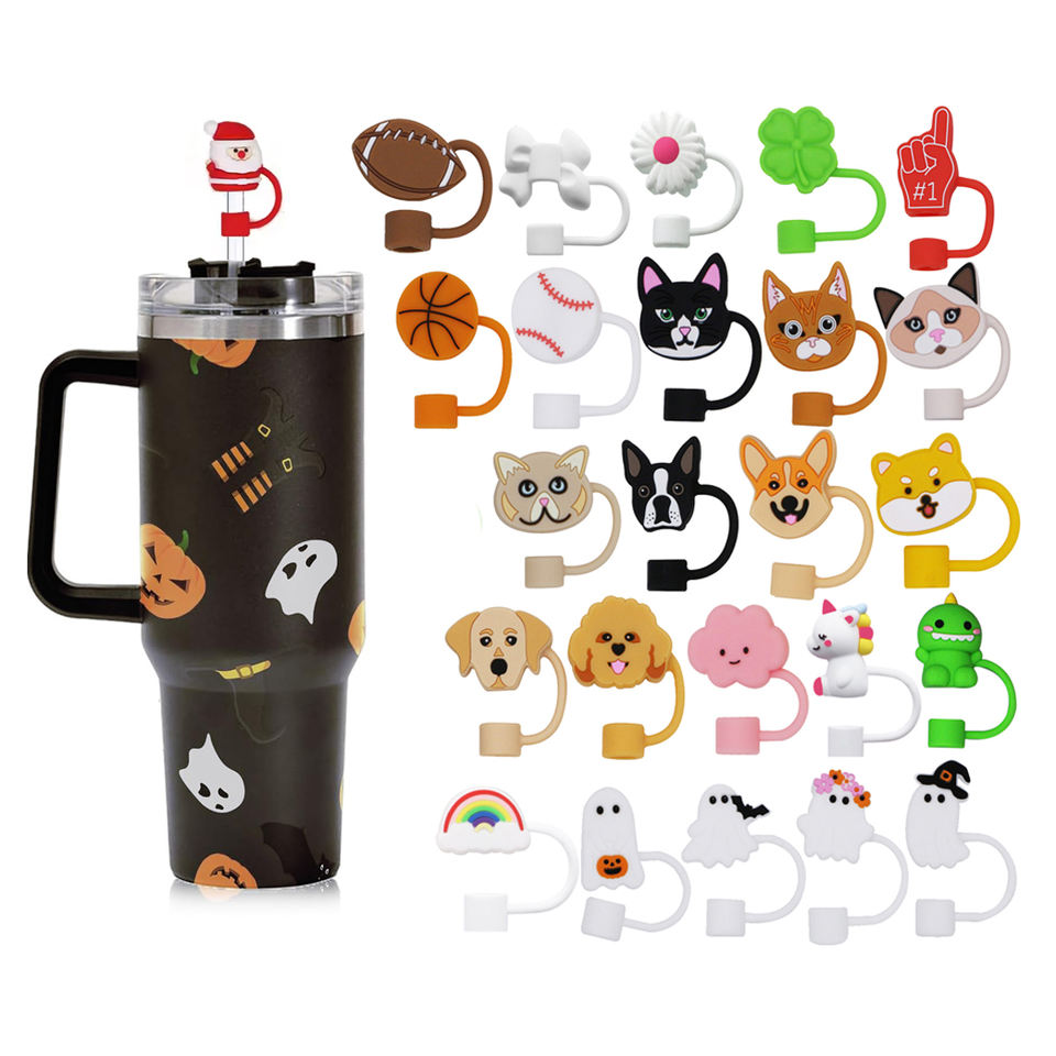 Adornos de Silicona 3D de 10 mm Personalizados para Vasos Stanley - Temática de Béisbol, Fútbol, Tenis, Lazos, Flores, Frutas, Halloween, Venta al Por Mayor