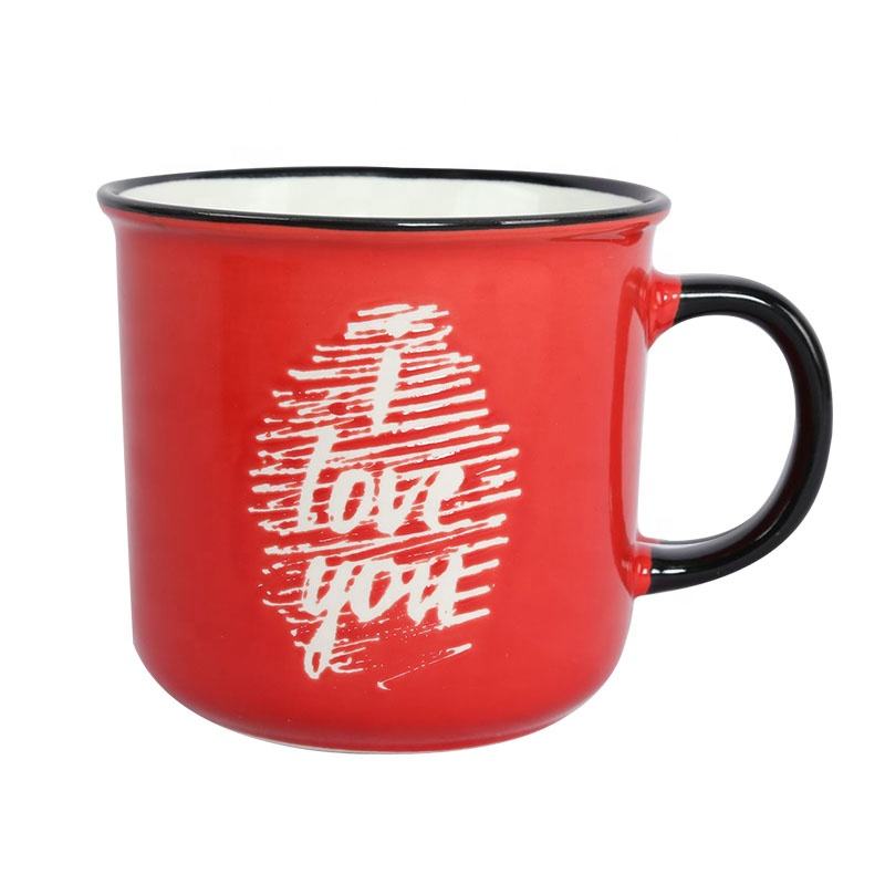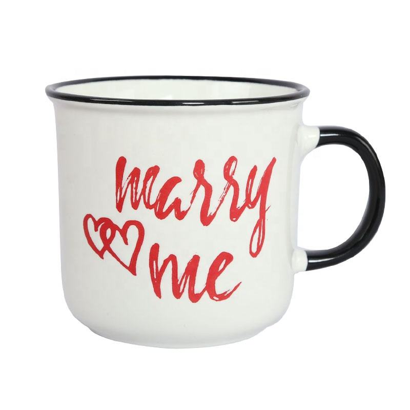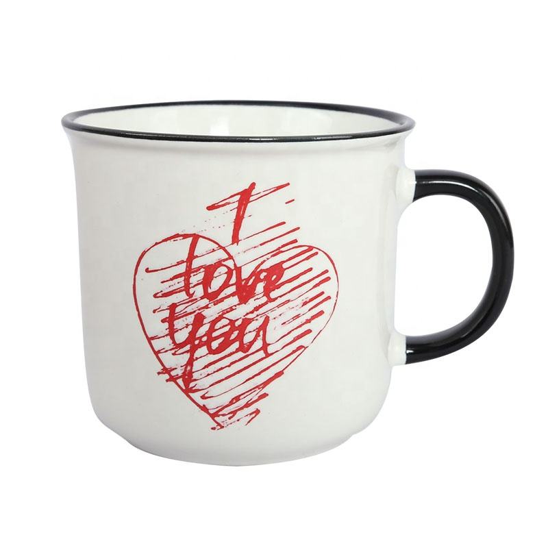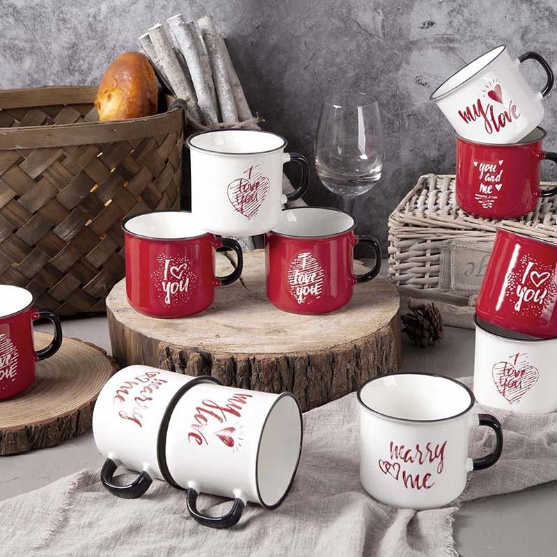 Taza de Café de Cerámica Personalizada de 14 oz para San Valentín, Nuevo Estilo, Regalo Promocional para Parejas, Diseño de Texto Blanco y Rojo, Impresión Serigráfica, Bodas