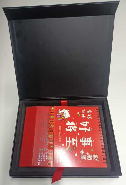 Personalizado 157G doble cobre mate película montada 2MM cartón duro EVA bandeja interior negro en forma de libro Flip UV revestimiento impermeable