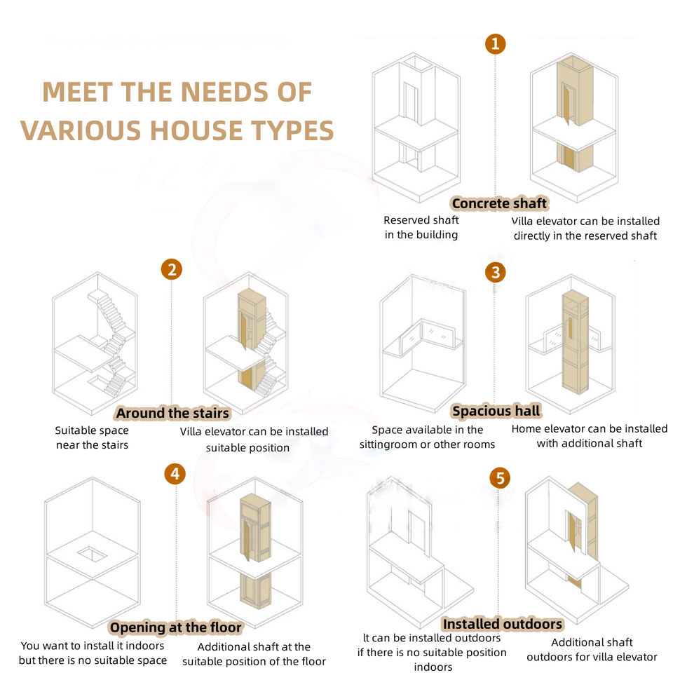 Ascensor Residencial de Lujo Personalizado para 2-4 Personas, sin Motor, con Aire Acondicionado, Diseño Circular, para Proyectos Inmobiliarios