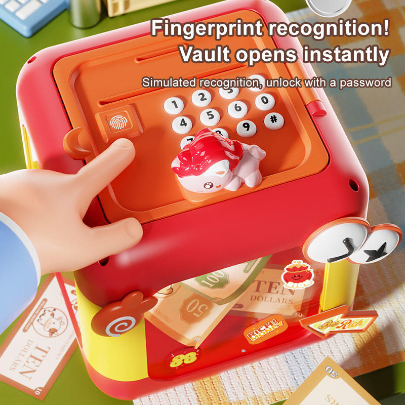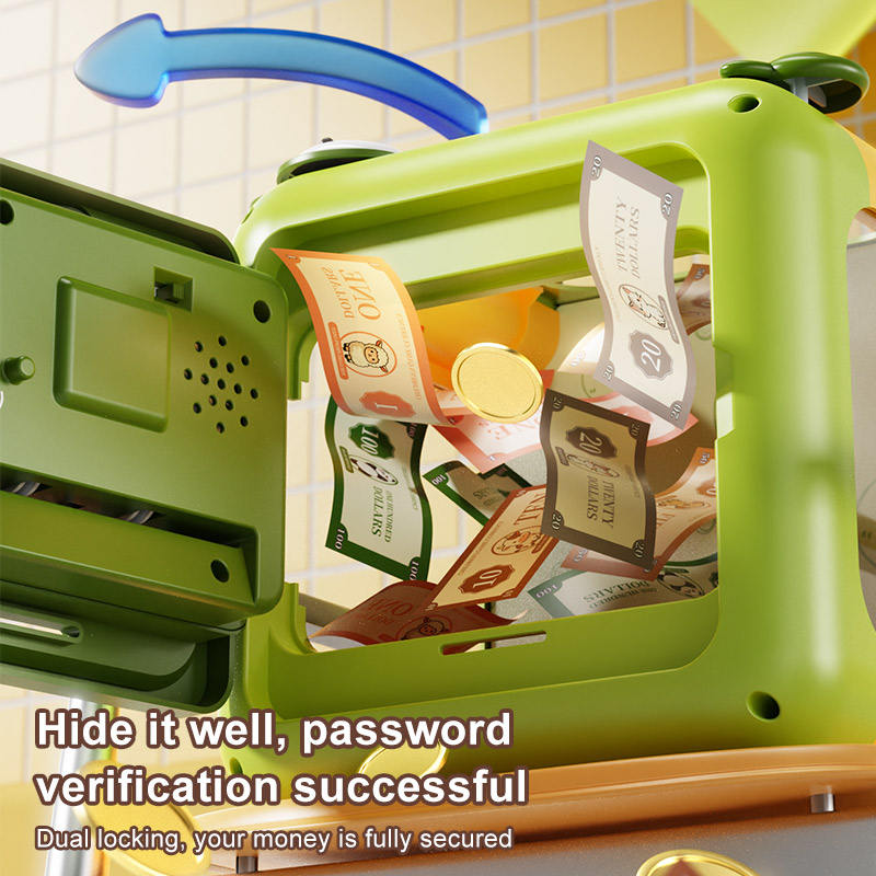 Caja Fuerte para Dinero con Contraseña 2 en 1 Personalizada con Reconocimiento de Huellas Dactilares Simulado y Desbloqueo con Contraseña, Alcancía