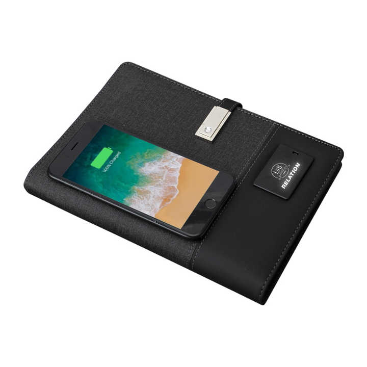 Personalizado 2023 Innovador A5 Dairy Notebook Set 7 colores Logotipo inalámbrico Banco de energía PU Cubierta Luz LED 7 colores Logotipo personalizable
