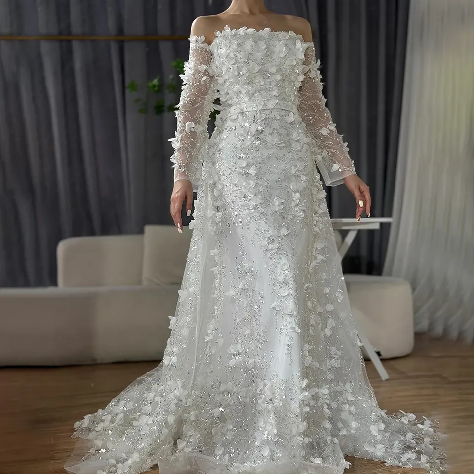 Vestido de noche de sirena con cordones en la espalda sin tirantes personalizado 2024 con sobrefalda y apliques para ocasiones formales LA72641