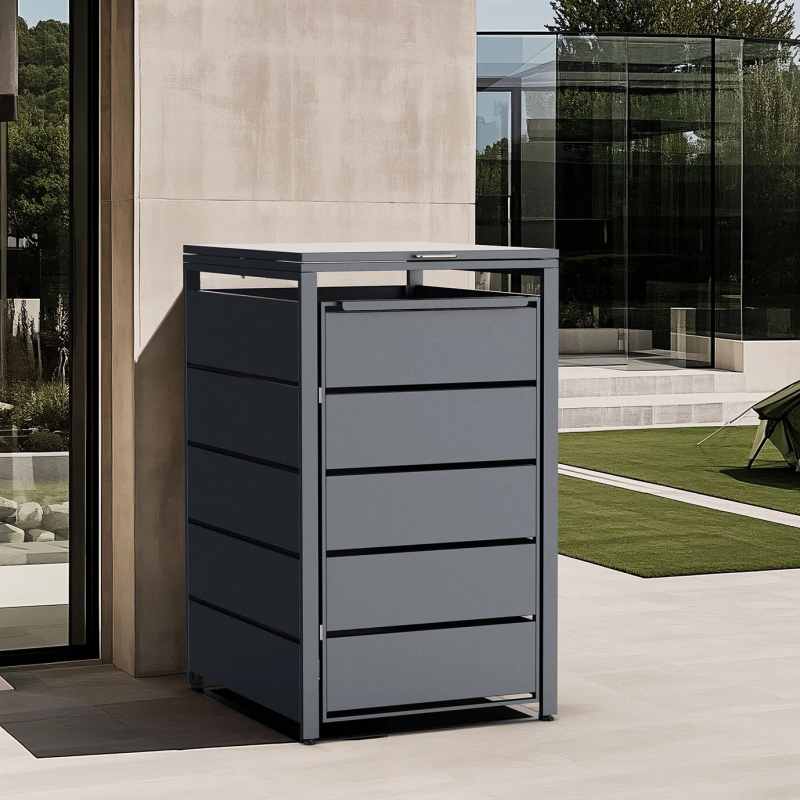 Cubo de almacenamiento de hoja galvanizada de 240L personalizado, conversión de 1 contenedor, cubo de basura para exteriores antracita resistente a la intemperie