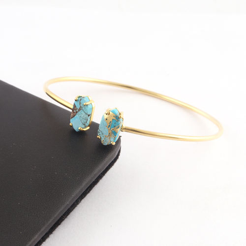 Juego de puntas chapadas en oro de 24 quilates personalizadas, brazalete ajustable abierto, brazalete creativo de cobre azul cielo Mohave turquesa a la moda