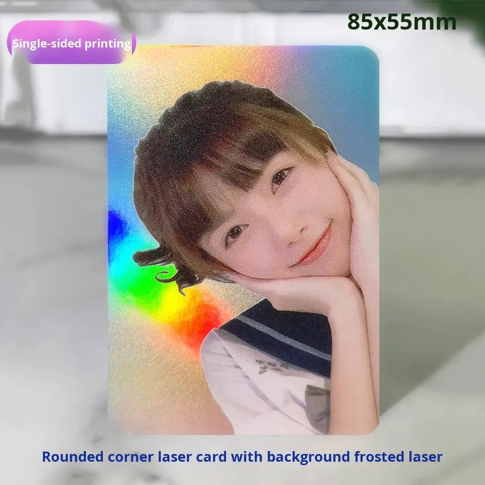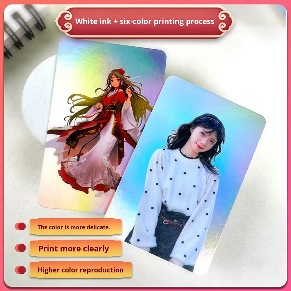 Tarjetas de regalo con Flash láser de 25 esquinas redondas personalizadas, autoimpresión, acabado brillante inverso, papel de tinta blanca, manualidades, personaje de película de TV
