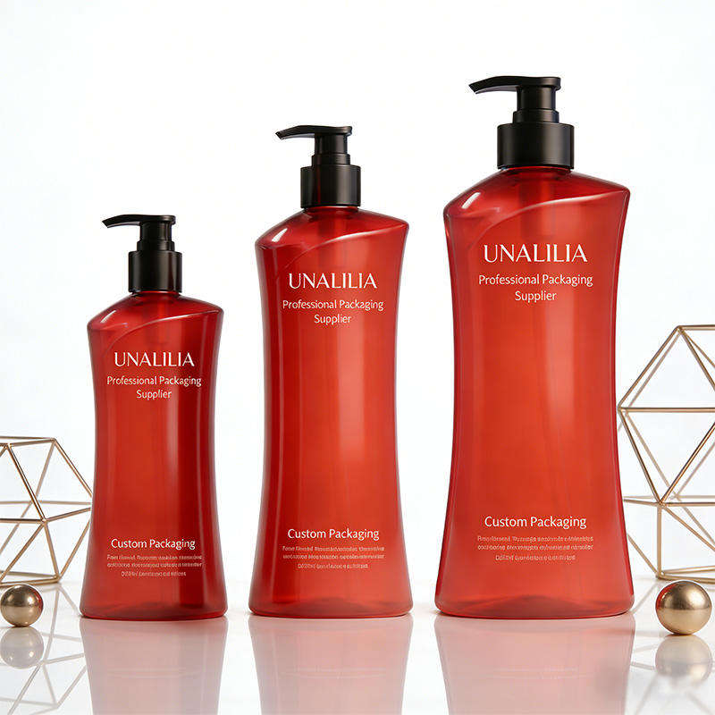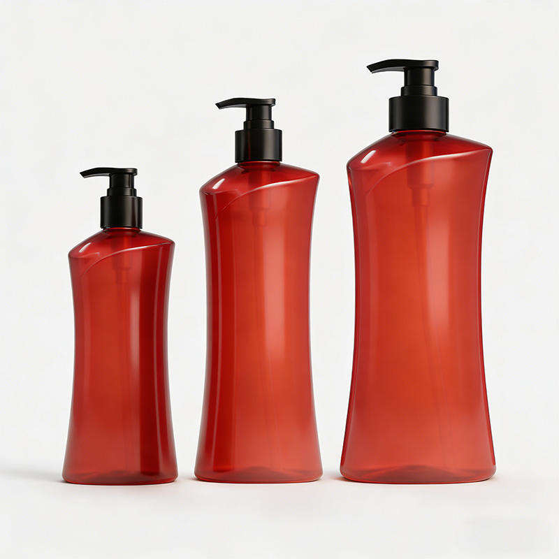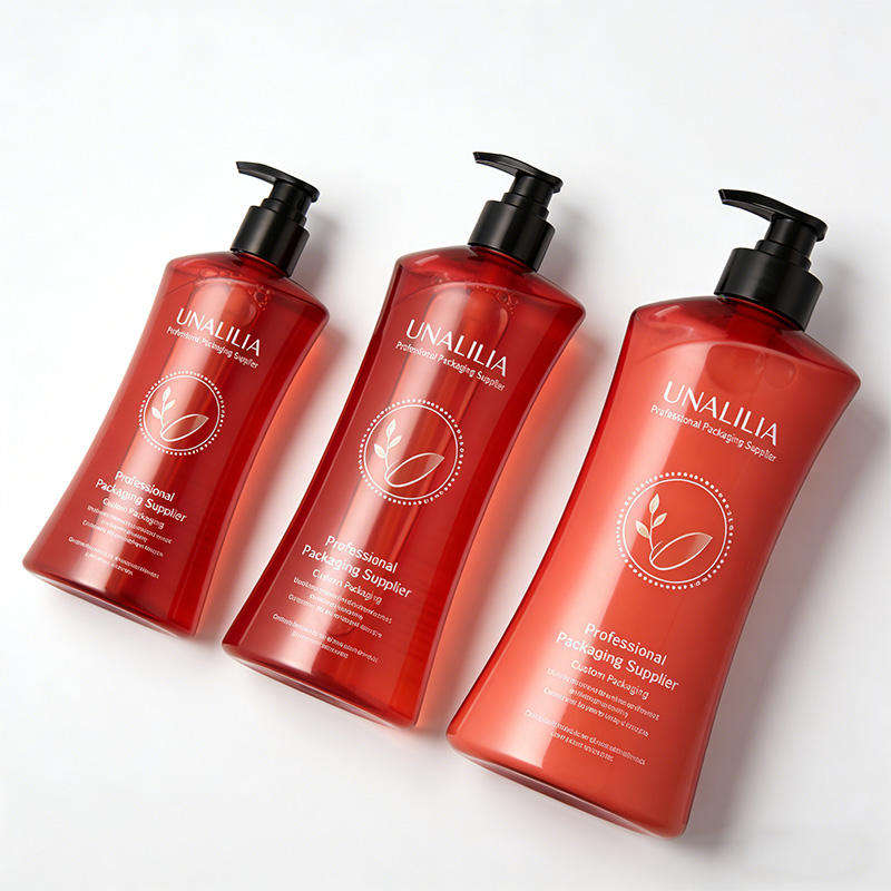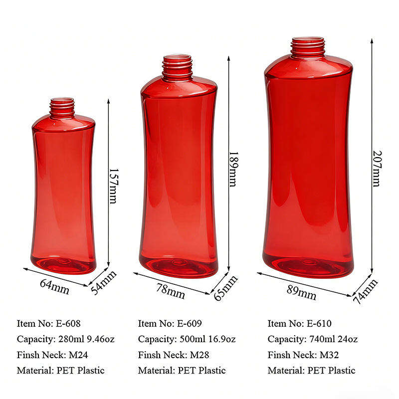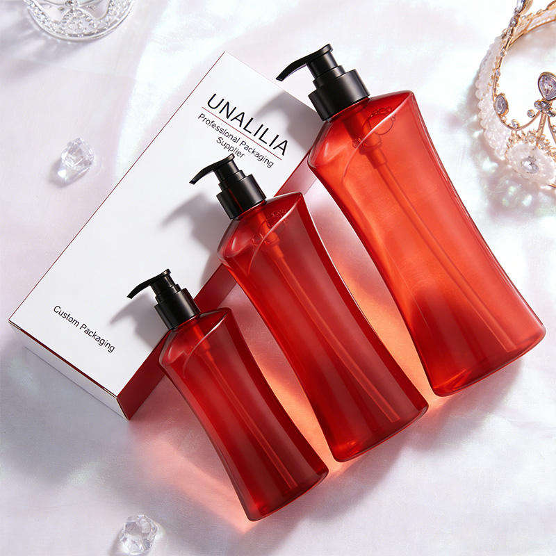 Botella de Plástico PET Transparente Roja Personalizada de 280 ml, 500 ml, 740 ml con Bomba Dosificadora para Envasado de Champú y Acondicionador al por Mayor