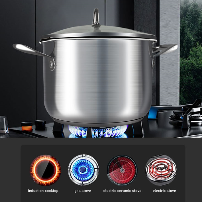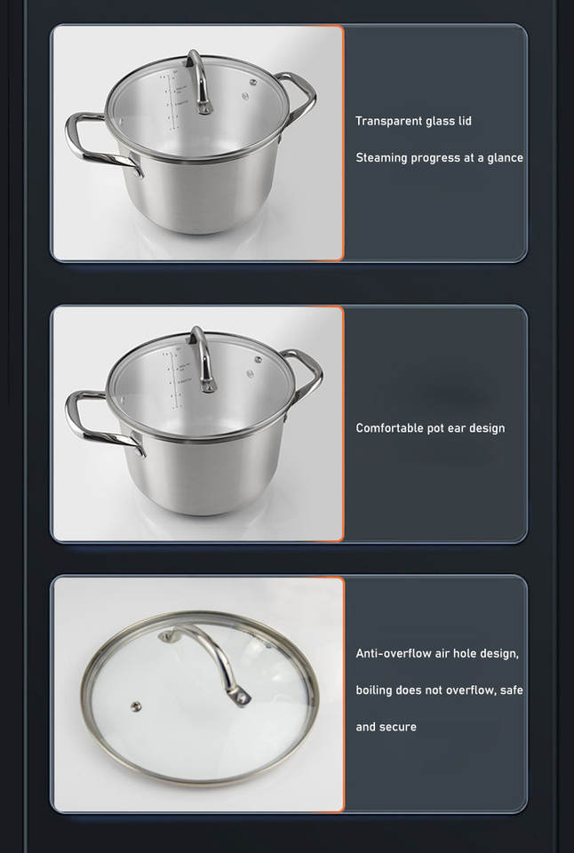Olla de acero inoxidable 304 personalizada Olla de cocina de fondo compuesto triple