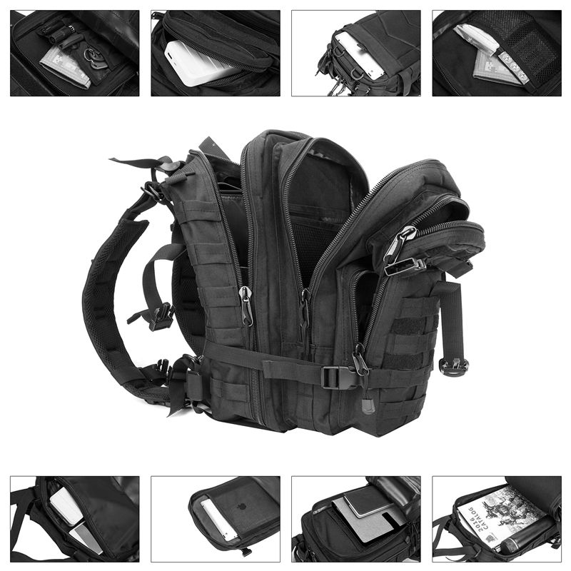 Mochila táctica pequeña personalizada para senderismo de 30l, mochila Molle resistente al agua y duradera con cierre de cremallera