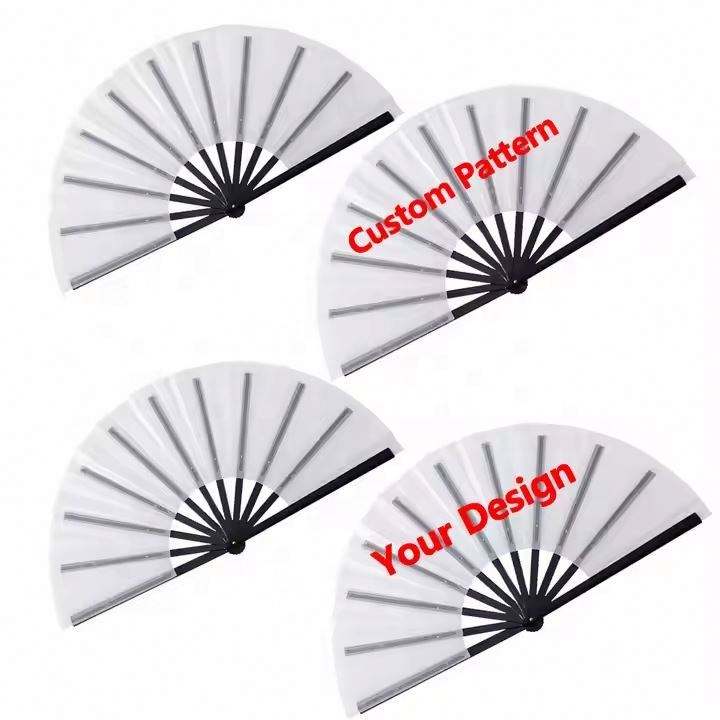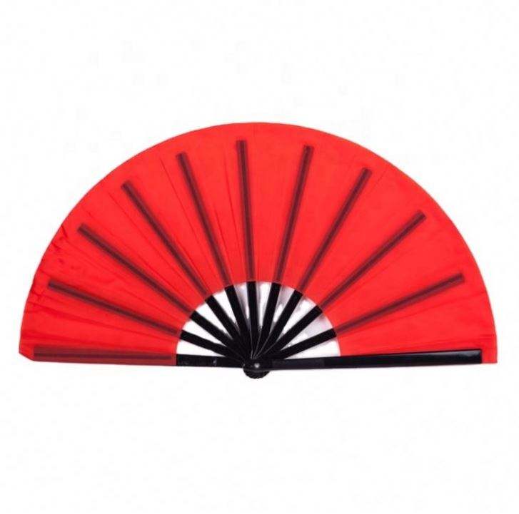 Abanico Plegable de Plástico Personalizado de 33 cm, Abanico de Mano Grande de Colores para Kung Fu, Carnaval, Música, Festival, Baile, Regalos, Artesanía de Bambú