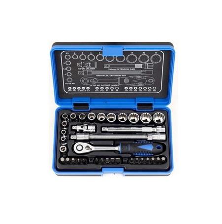 35PCs 1/4 "DR. 60T Spline Socket Wrench Y BitHerramienta incluye