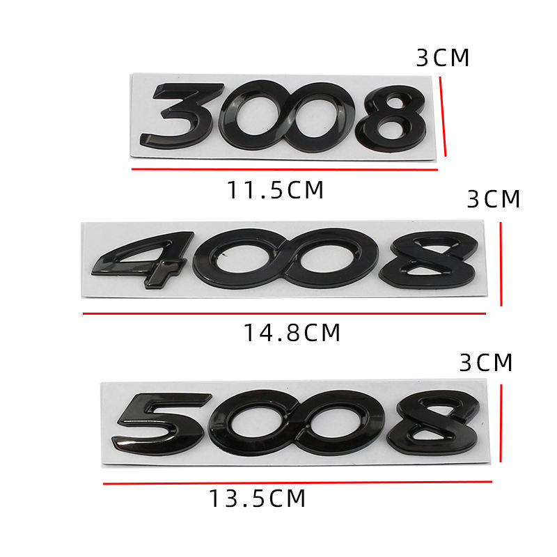Personalizado 3D aleación de zinc Material Digital cromo logo 2008 3008 4008 5008 Metal pegatinas digitales para maletero