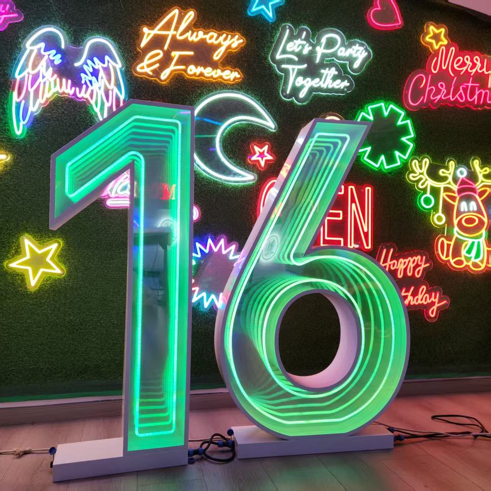 Letras de Marquesina con Espejo Infinito 3D de Neón Personalizadas de 3 y 4 Pies, Luces LED de Números de Marquesina para Decoración de Bodas y Fiestas de Cumpleaños