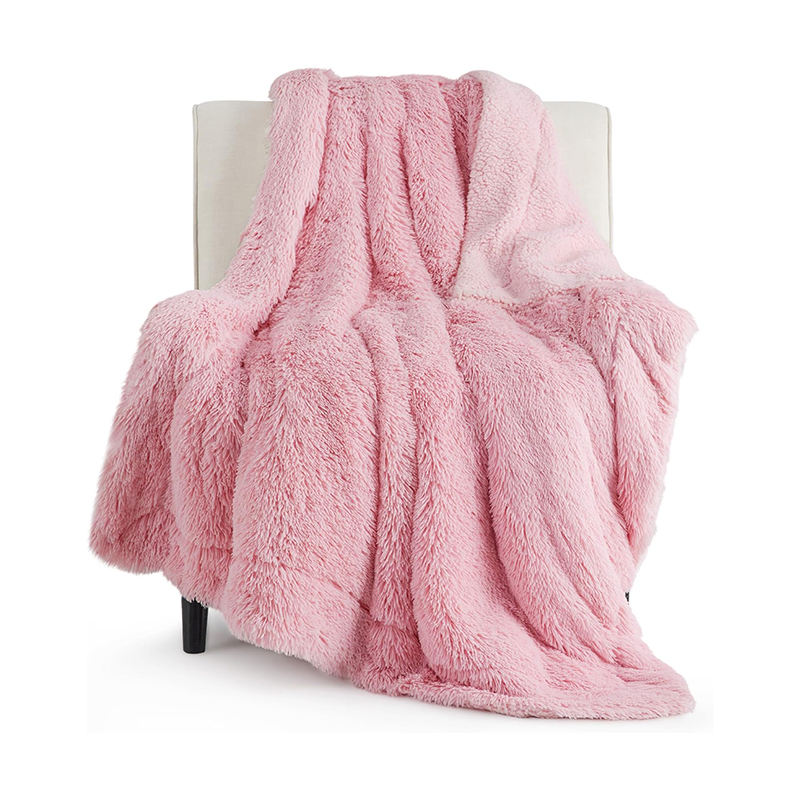 Personalizado 40MM largo felpa esponjosa microfibra sólido día Oficina Coche habitación manta estilo coreano tejido 100% poliéster