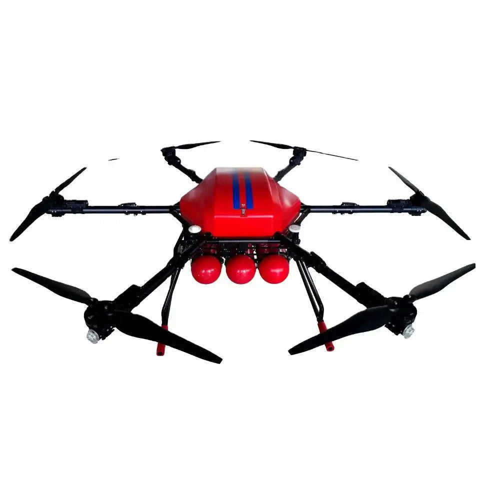 Dron Hexarotor eléctrico de carga personalizado de 40kg para rescate de emergencia, accesorio de equipo de lucha contra incendios con Control remoto