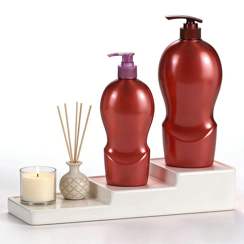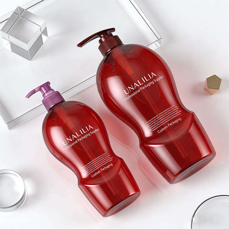 Botella de Plástico PET Roja Personalizada de 480 ml y 1000 ml con Bomba Dosificadora para Champú, Acondicionador para el Cuidado del Cabello, Gel de Ducha y Jabón Corporal