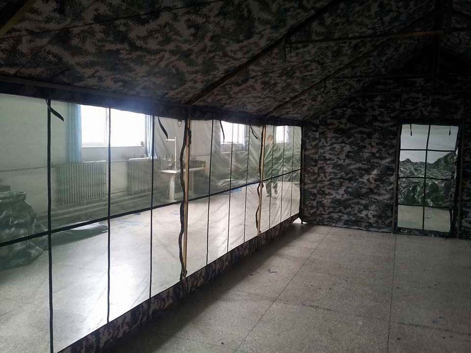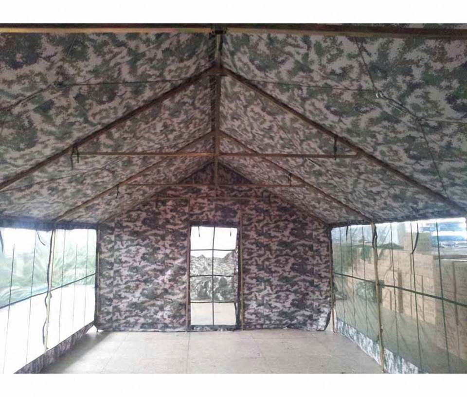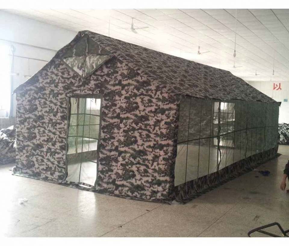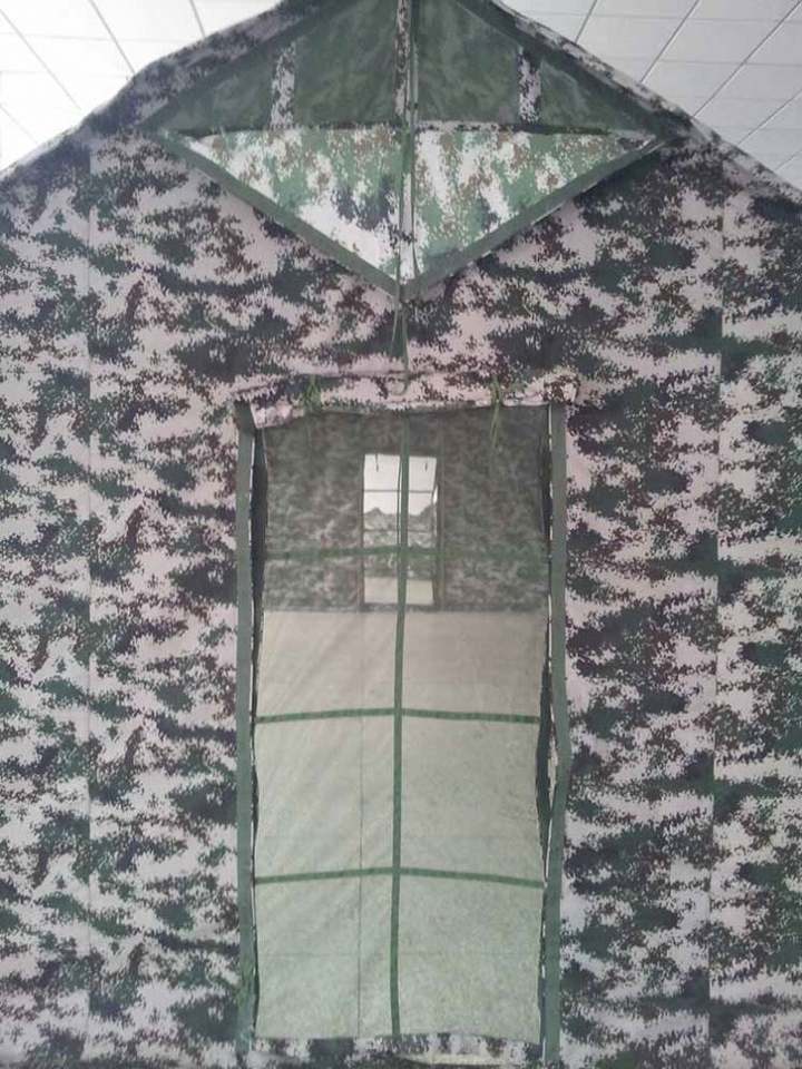 Carpa de Camping de Lona Tipo Safari Grande, Personalizada, de 5x10 Metros, con una Habitación, Diseño en A, Camuflaje, con Pared Lateral de Pantalla Grande, para las Cuatro Estaciones