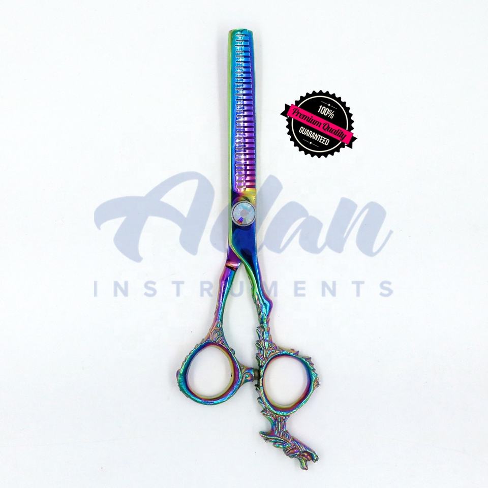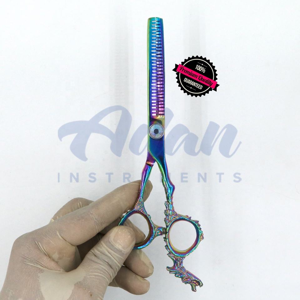 Tijeras de adelgazamiento del cabello J2 japonesas de dragón de calidad superior personalizadas de 6 pulgadas 28 dientes multicolor profesional afilado inoxidable