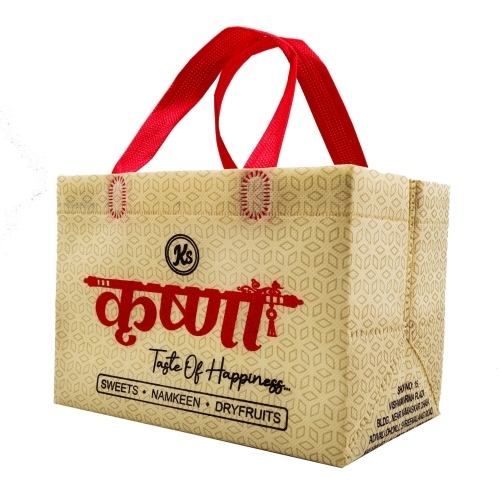 Personalizado 60G.S.M W 9 X H 6 X G 6 Bolsas/cajas de plástico dulce mithai no tejidas Almacenamiento multiusos con diseño impreso