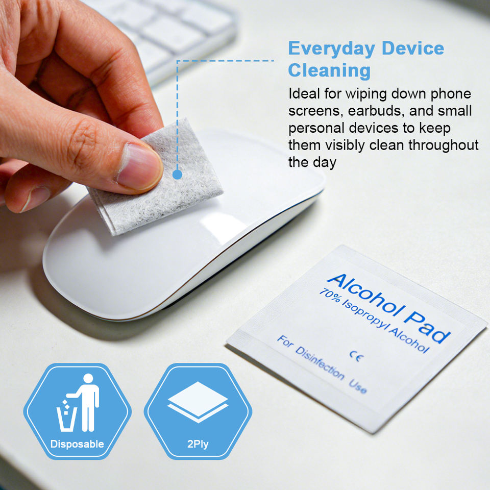 Toallitas Desinfectantes Personalizadas con Alcohol Isopropílico al 70% para Teléfonos Móviles, 100 Unidades de 3x6cm, de un Solo Uso, para Uso Doméstico, Antisépticas